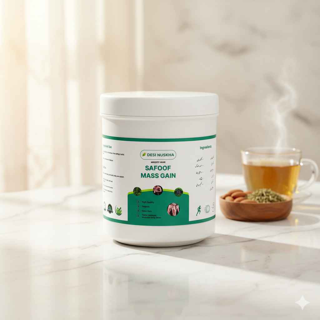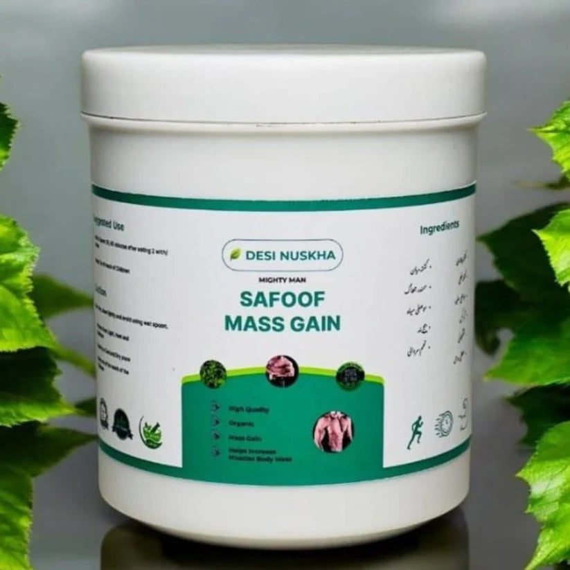 Safoof Mass Gain is made with pure herbal ingredients that help improve appetite, energy, and body strength. 🌿